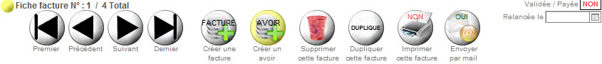 Ces 4 boutons vous permettent de parcourir le fichier des factures & avoirs (Premier, Précédent, Suivant, Dernier)