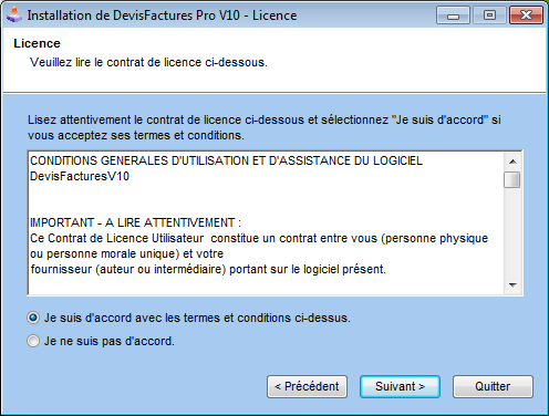 Après avoir lu et accepter le contrat de licence vous pouvez continuer l'installation: