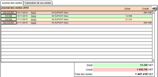 Cliquez sur l'imprimante pour imprimer le journal des ventes.