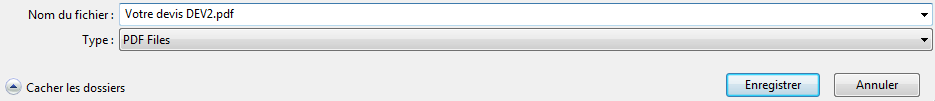 Puis donnez un nom à votre fichier PDF (exemple: Votre devis DEV2