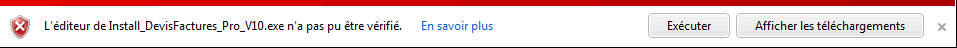 L'editeur de Install_DevisFactures_Pro_V10.exe n'a pas pu être vérifié (IDEM pour les autres logiciels de l'éditeur www.logiciels-faciles.fr).