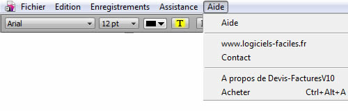 Acheter : Ouvre la fenêtre qui vous permet d'acheter le logiciel Devis-Factures Pro V10 (achat sécurisé PayPal ou par chèque via le formulaire inclus dans le logiciel.