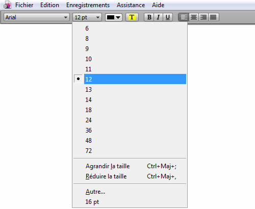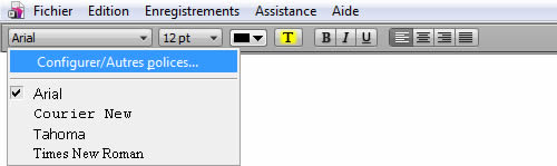 Polices : Pour choisir un type de police (exemple: Arial, Courier New, etc...).